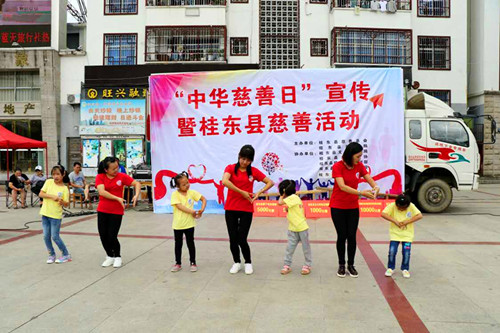 在罗霄广场活动现场摆放了各类慈善公益宣传展板和宣传栏,还设置了现场募捐箱。为了让活动丰富多彩、扣人心弦,邀请了桂东县东方舞韵艺术培训中心、县老年体协、玖旺艺术培训部、朝阳培智学校等单位进行了慈善义演,表演了《回家的路上》《感恩的心》等精彩节目。义演结束后举行了一场奇石拍卖会,不少的奇石收藏爱好者捐献出自己的收藏品用于义拍。