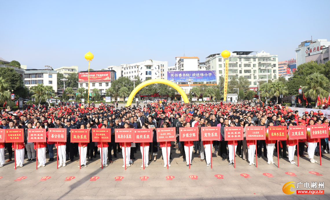 继11月15日中华慈善总会“一张纸献爱心行动”暨“慈善公益流动宣传车”郴州公益行在资兴市正式启动后,11月20日上午,中华慈善总会“慈善公益流动宣传车郴州行活动的第二站来到宜章县,郴州市委常委、副市长徐怀好宣布活动启动。中华慈善总会新闻界慈善促进会执行会长徐镱轩、中华慈善总会新闻界慈善促进会副秘书长周志芬、郴州市慈善总会会长樊忠达出席启动仪式。宜章县县直机关干部职工、宜章县好人协会志愿者等上千人参加启动仪式。