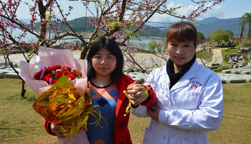 一路前行,一路欢歌。 在本次活动中,我们开展了郴州市骨科医院与特困骨关节患者一对一帮扶。护士长李红军、最美微笑护士袁小敏将象征健康和友谊的金丝带系到了对帮扶对象的手上。灿烂桃花映衬中,红了脸庞,暖了情怀。面对电视台记者的摄像头,病友激动地说:“感谢政府,感谢市慈善总会和市骨科医院的帮助,让我重新站立,重新点燃生活的希望。” 金丝带连接你和我 我的人生重新绽放希望 郴州市骨科医院党支部书记、行政院长王海霞表示,我们将继续坚持严谨敬业,坚持做好“骨关节置换救助基金项目”,将爱和信任传递给每一个病友,用行动践行医院的使命:做一台手术出一台精品,看一个病人交一个朋友。 这个浪漫的季节,桃花说开就开了,一树灿烂,感动了整个春天。 慈善救助暖人心,爱在桃花浪漫时。