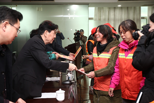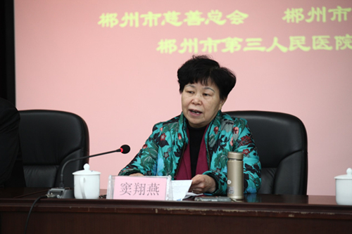 原市人大常委会副主任、市慈善总会常务副会长窦翔燕讲话。她代表市慈善总会对辛勤劳动在一线的环卫工人表示亲切的问候,对环卫工人为城市环境卫生所付出的辛勤劳动、为环卫事业所做出的贡献,表示衷心的感谢并致以崇高的敬意! 窦翔燕说:“情系环卫工”爱心体检公益项目的开展,充分体现了党和政府对环卫工人的关心关怀,体现了社会对环卫工人的关爱和尊敬。当前,我市正在深入贯彻落实党的十九大精神,大力实施环境惠民工程,我们要通过开展“情系环卫工”爱心体检公益活动,进一步唤起全社会对环卫工人的关爱,让更多的社会爱心人士参与到关爱环卫工人、奉献环卫事业的行动中来,以实际行动实施好环境惠民工程。同时,希望环卫工人更加热爱环卫工作,爱岗敬业。在兢兢业业工作的同时,保重好身体,为我市环卫事业的发展、为建设美丽郴州做出更大的贡献! 市慈善办主任喻应志作了《“情系环卫工”爱心体检公益项目》简介。他说:为了让环卫工人更好地了解自己的健康状况,拥有更加健康的体魄,安心于工作、尽心于环卫事业,市慈善总会提供关爱资金,联合市环境卫生管理处、市第三人民医院,设立“情系环卫工”爱心体检公益项目。从2018年起,每年为我市城区一线环卫临时工爱心免费体检一次,并对特困环卫家庭开展爱心帮扶。 在启动仪式上,宣读了《郴州市慈善总会关于2018年“情系环卫工”爱心体检的通知》。2018年,市慈善总会按照每人500元的标准,为市城区316名一线环卫临时工发放市第三人民医院健康体检卡。会上,参会领导为40名一线环卫工人代表发放了《“情系环卫工”爱心体检》卡。 市环卫处主任何剑民、市第三人民医院院长张雪平在启动仪式上发言说,环卫事业是高尚的事业,环卫工人是“城市的美容师”。他们用辛勤劳动开启城市的黎明,用滴滴汗水换来整个城市的整洁。他们或头顶烈日或踏冰扫雪,或冒雨清污,总是以最快的速度还城市美丽容颜。他们工作环境差,作业时间长,劳动强度大,长期与粉尘、垃圾、污染源等相伴,身体健康受到极大影响,迫切需要健康保障和社会各界的关爱。我们必须为他们的身体健康保驾护航,把“情系环卫工”爱心体检的项目认真做好、全面落实。 受助环卫工人代表陶丽华在启动仪式上深情地说,“非常感谢‘情系环卫工’爱心体检公益项目的发起单位,你们这样关心关爱环卫工人,今后我要更加注意身体、更加安心工作、更加尽心于环卫事业”。 (赤 尚文/图)