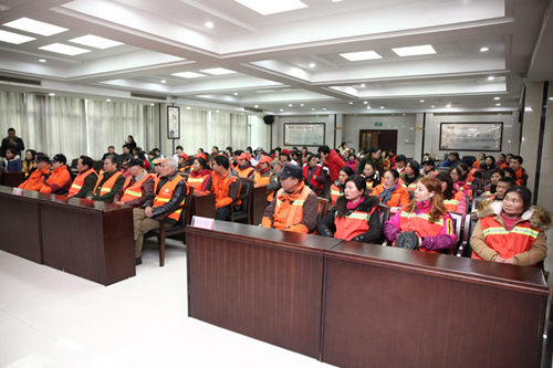 2018年1月24日下午,我市举行2018年“情系环卫工” 爱心体检公益项目启动仪式。参加启动仪式的有郴州城区一线环卫工人代表、义工志愿者代表、第三人民医院医护人员代表。市慈善总会易佩康、窦翔燕出席启动仪式,市民政局党组成员、副局长邱爱国主持。市慈善办主任喻应志、市环卫处主任何剑民、市第三人民医院院长张雪平出席。