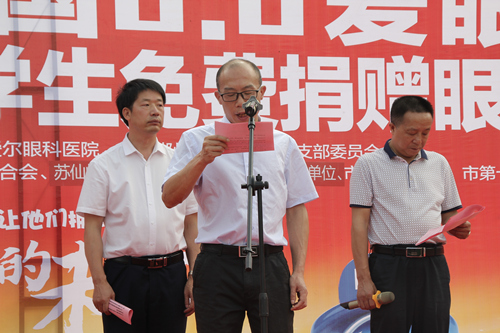 6月6日是第24个全国“爱眼日”。在这特殊的日子里,市慈善总会联合郴州爱尔眼科医院在苏仙福地广场举办2019年“全国6.6爱眼日”宣传暨“关爱贫困眼疾儿童免费配眼镜”公益活动。出席活动的领导及嘉宾有:市慈善总会副会长兼秘书长李志刚、市慈善办主任喻应志、市卫生健康委副主任钟庆红、市残联副理事长雷运明、市教育局副局长廖庆庆、郴州爱尔医院院长、市慈善总会副会长李晓芬、市第十三完小校长胡辉。200多名青少年学生,身着艳丽的校服参加活动。