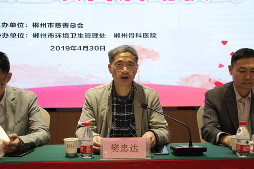 4月30日,在5.1国际劳动节到来之际,由市慈善总会、市环卫服务中心、郴州骨科医院联合开展的“庆五一・献爱心―情系环卫工・爱心送体检”公益活动在郴州骨科医院举行启动仪式。市慈善总会会长樊忠达、市慈善总会副会长秘书长李志刚、副会长邓德武、市环卫服务中心主任何剑民、郴州骨科医院院长陈庆国等出席。