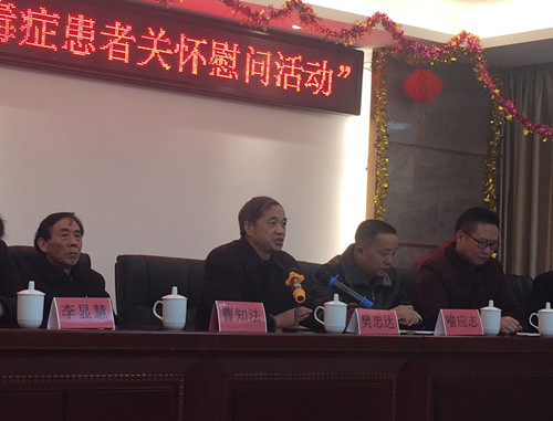 市慈善总会会长樊忠达、市慈善办主任喻应志、曹知法、副会长邓德武、市肾病协会会长李宣霖、圣康医院董事长李衍华、众生爱心企业联合会秘书长李显慧、金煌集团董事长谭聪圣等领导和爱心商家、爱心人士以及志愿者参加活动,并为受助对象代表现场发放慰问物资。 市慈善总会会长樊忠达(左二)讲话 尿毒症疾病被称之为不死的癌症,尿毒症患者是一个特殊的弱势群体,长期靠透析、服药艰难维持生命,经济负担沉重,备受生理和心理等方面的痛苦和折磨。为了让贫困尿毒症患者感受到社会爱心的温暖,市慈善总会、市肾病协会联合郴州市圣康医院、郴州市众生爱心企业联合会、轻松筹携手开展“暖冬行动――千名尿毒症患者关怀慰问活动”。