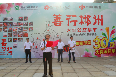 秋高气爽、丹桂飘香、情满人间、爱意浓浓。9月7日上午,在2019年“99公益日”活动盛大开启之日,市慈善总会同期举办腾讯“99公益日”大型公益集市,苏仙岭下福地广场热闹非凡,爱的奉献旋律回荡,在市慈善总会会长樊忠达宣布:“2019年腾讯‘99公益一起爱・善行郴州’大型公益集市活动正式启动!”的号令声中,郴州腾讯“99公益日”大型公益集市隆重开市。与此同时,北湖公园广场、友阿集团广场、兴隆步行街、曹家坪农产品集市等分会场即时开市。
