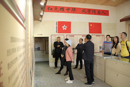 参加这次活动的人员,来到“东源红色文化纪念馆”参观学习。宜章县关溪乡东源村位于湖南与广东交界地带,由鲫鱼塘、鲁塘、栗木村合并而来,总面积14.5平方公里,辖29个村民小组,总人口2700余人。这里山高林密,地处偏僻,当年朱德改编的中国工农革命军曾在这里开展革命活动,东源成为湘南起义的一个据点,著名的坪石大捷朱德部队从大东源一代出发。军爱民,民拥军,这里的人民群众以自己的家业,甚至生命与热血支持工农革命军谱写了可歌可泣的军民鱼水情,优良的革命传统代代相传。