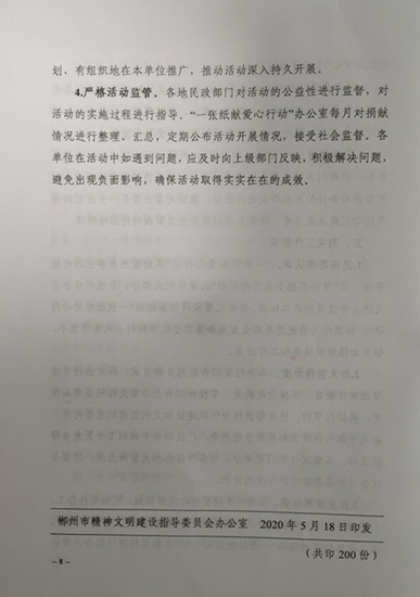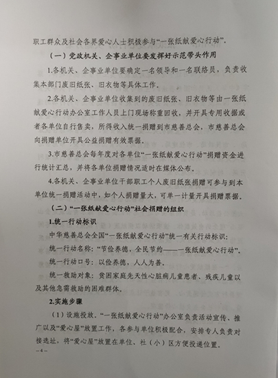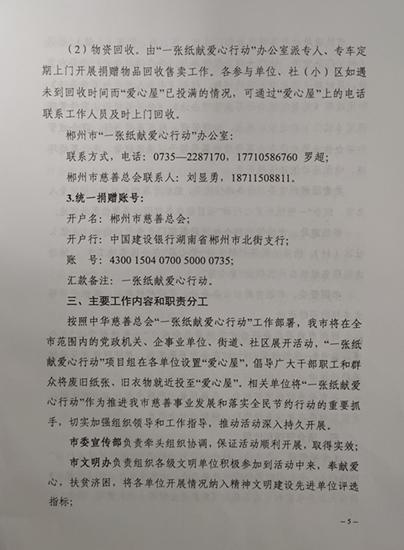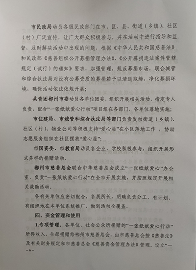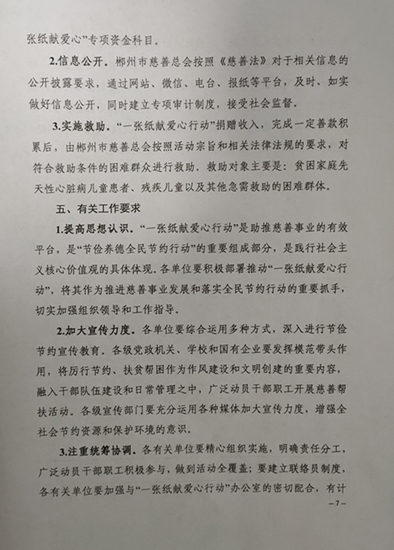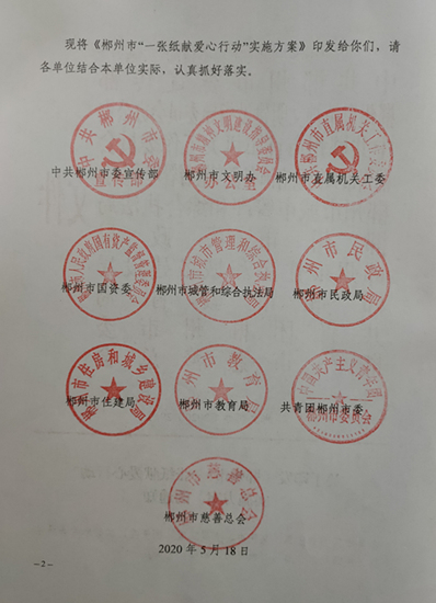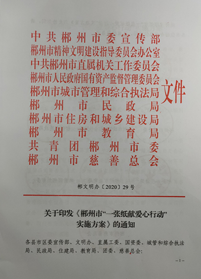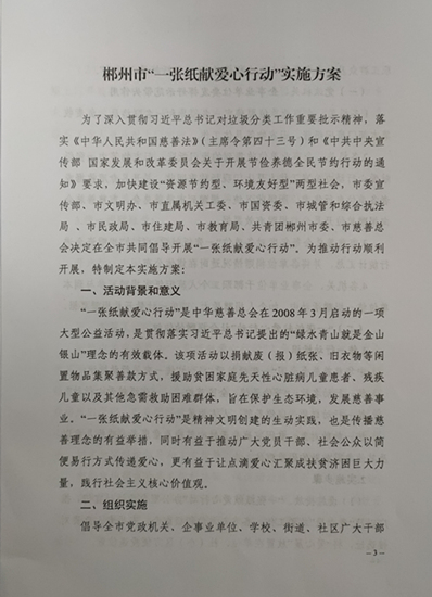 关于印发《郴州市“一张纸献爱心行动”实施方案》的 通知