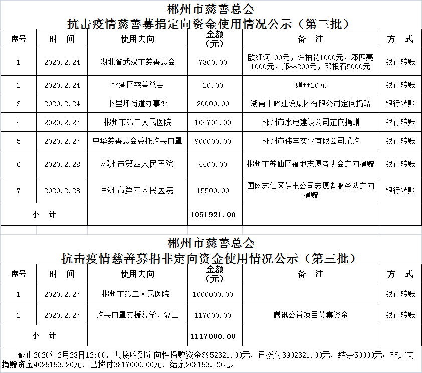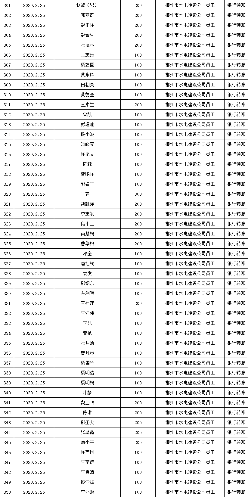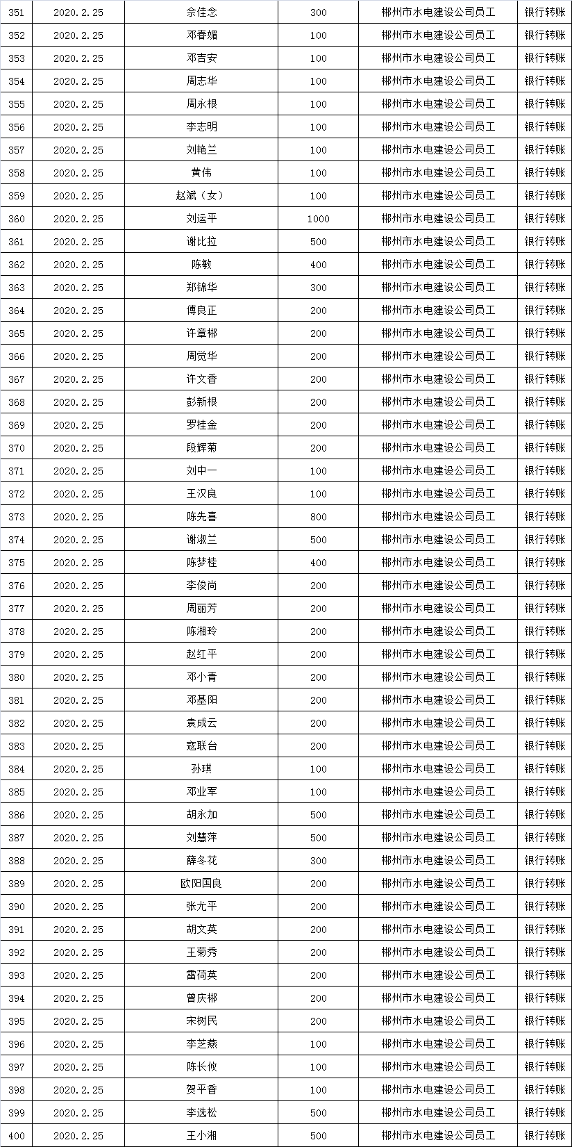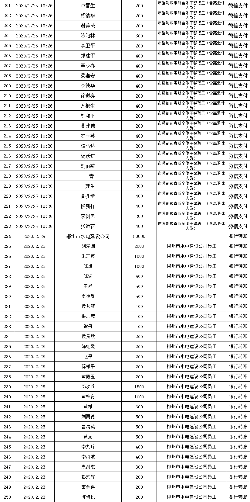郴州市慈善总会抗击疫情慈善资金募捐公示(第六批)