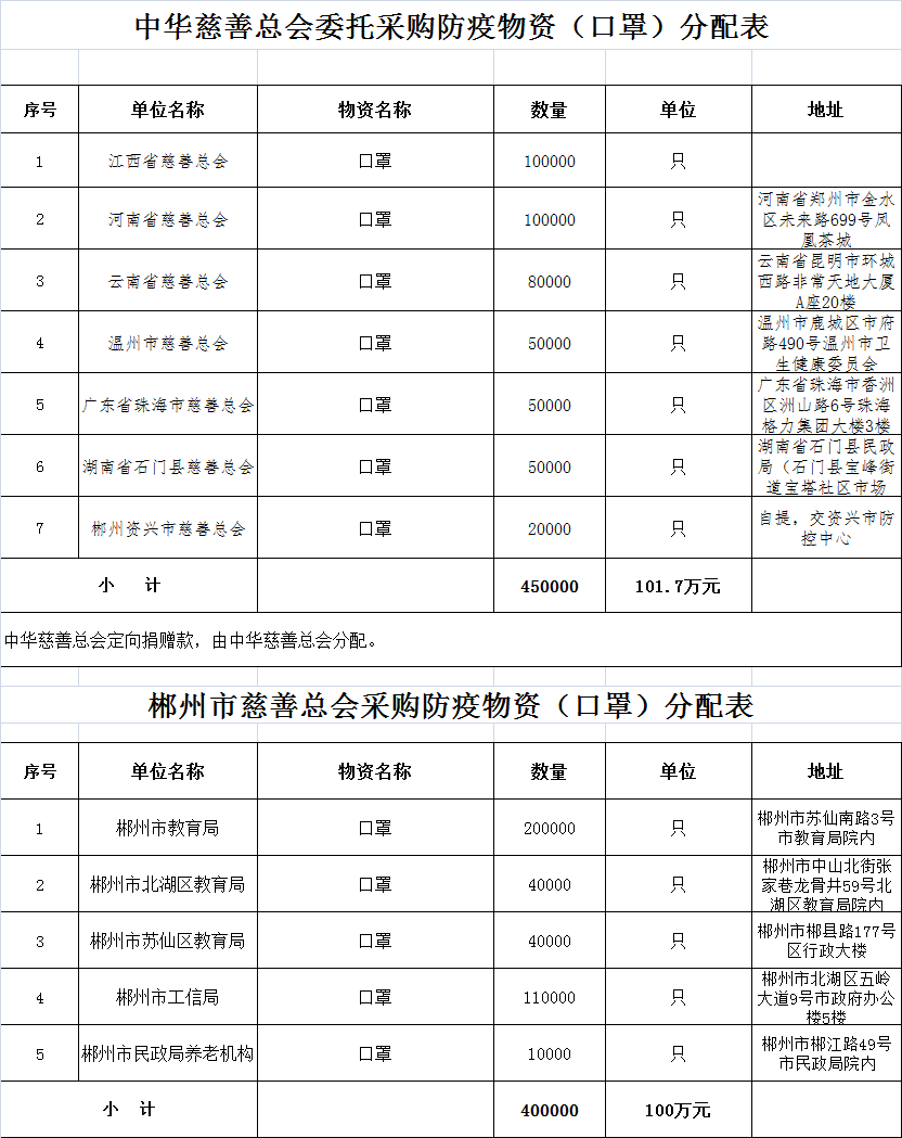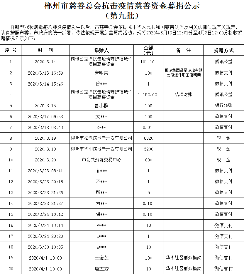 郴州市慈善总会抗击疫情慈善资金募捐公示(第九批)